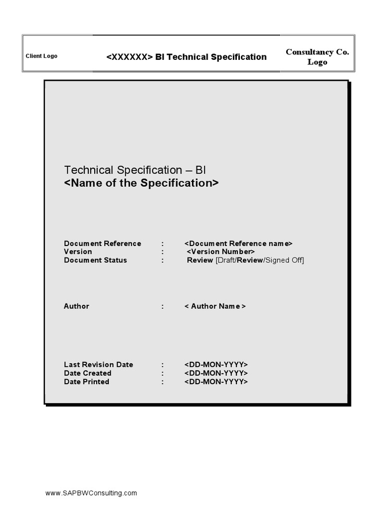 Learn To Create A Sap Bw Technical Specification Template